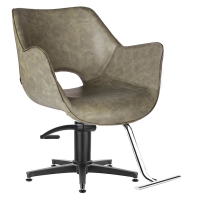 A winged arm hairdressing salon chair, with a retro twist. With curved lines and angled arms, the Chloe is a 60s inspired take on the classic wing chair design. With detail piping and round bucket seat, it is a retro twist on sophistication.
