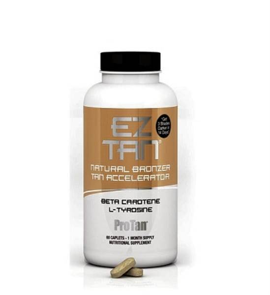 Natural Bronzer & Tan Accelerator Supplement. No Sun Required With this Revolutionary Natural Bronzing Vitamin.The perfect choice for breaking the tanning plateau. Achieve a tan that you thought was not possible for your skin type within 14 days.A unique "tanners blend" of vitamins that unlocks the key to your body’s natural tanning process while providing you with a natural bronze glow.By increasing your Melanin production you are able to achieve a faster, longer lasting tan thus maximizing your tanning sessions.Simple and effective, EZ Tan helps increase your Melanin production by the oxidation of the Amino Acid Tyrosine, which is greatly enhanced when exposed to ultra violet light.