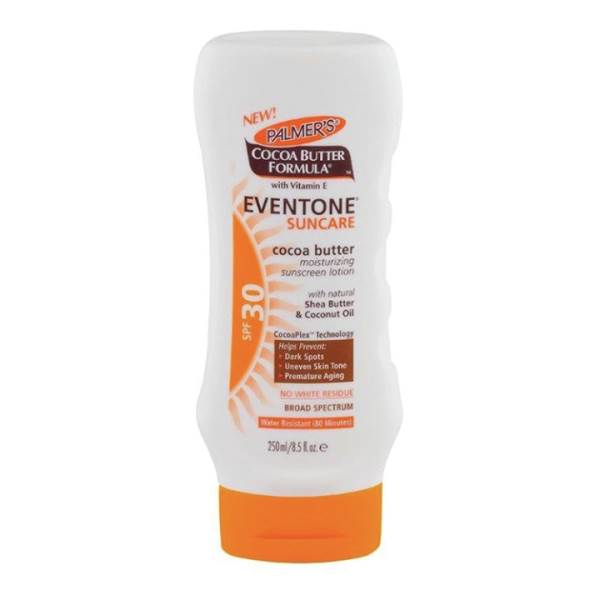 - Palmer's Cocoa Butter Formula Eventone Suncare contains active ingredients and natural moisturizers Cocoa Butter Shea Butter and Coconut Oil to protect your skin from the damaging effects of the sun