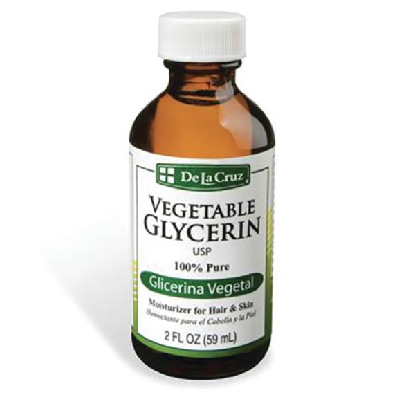 Our De La Cruz Vegetable Glycerin absorbs moisture and thus is a valuable softening aid for chapped or dry skin