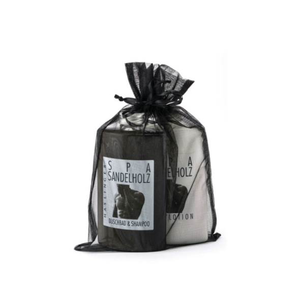 Sandalwood Shower Gel & Shampoo and Bodylotion in an Organza bag 2x200ml.