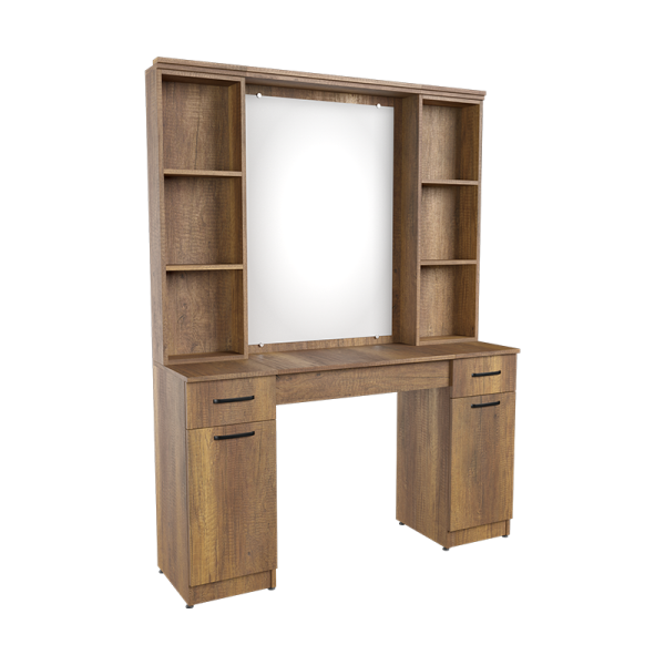 4 mm float mirror (safety film feature against dispersion)Apron pivot with brakeDrawer slide with brakeMetal handleAdjustable floor attachment