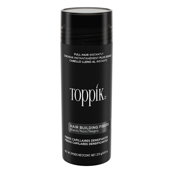 Toppik Hair Building Fibers, made of colored keratin protein, blend undetectably with existing hair strands to instantly create the appearance of naturally thick, full hair.