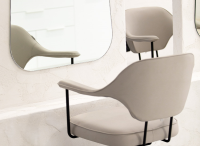 Looking for a salon chair to make a statement? Meet Aria, a sleek, curved styling chair that’s perfect for breathing new life into your salon space. With curved lines and detailed piping, this salon chair fits like a hug. The seat separated from the back and arms wraps around for a floating, clean look. With a sculptural frame and stone upholstery, we think it’s a modern classic.